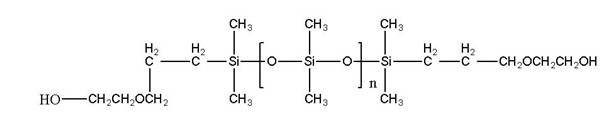 产品性质:反应性双端羟丙基硅油,可用于合成有机硅-聚氨酯/聚酯嵌段聚合物。